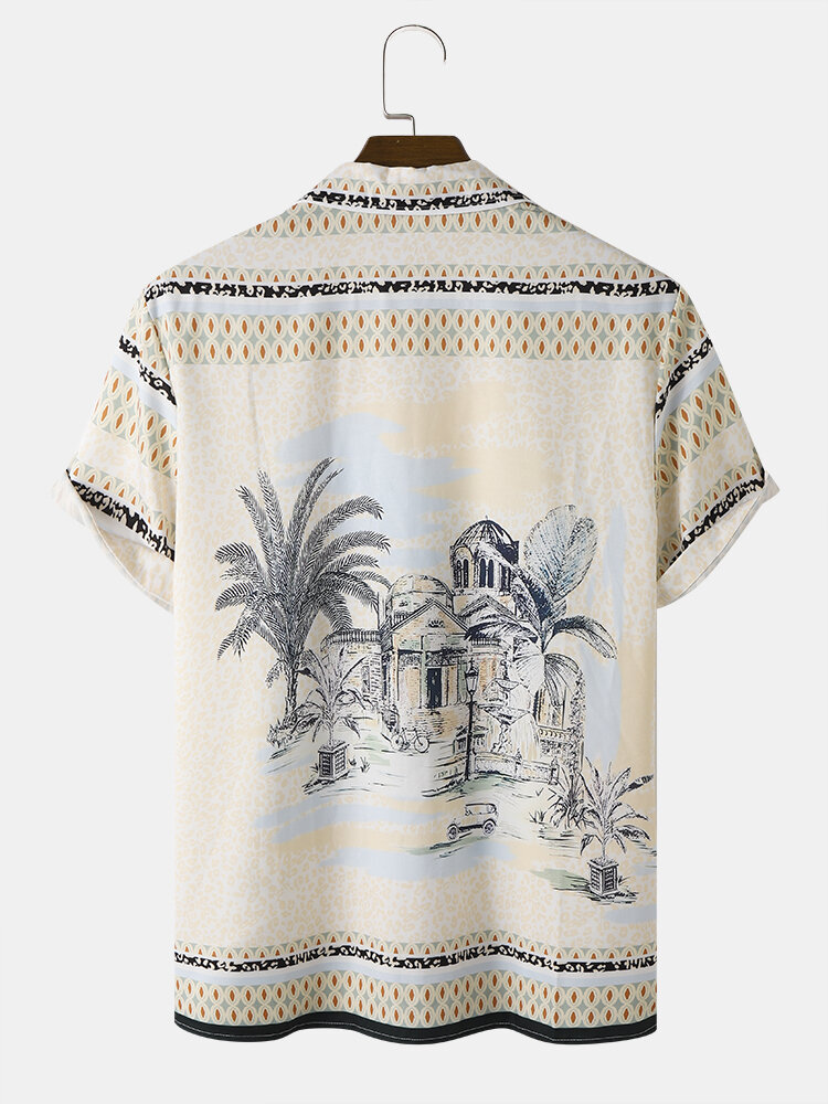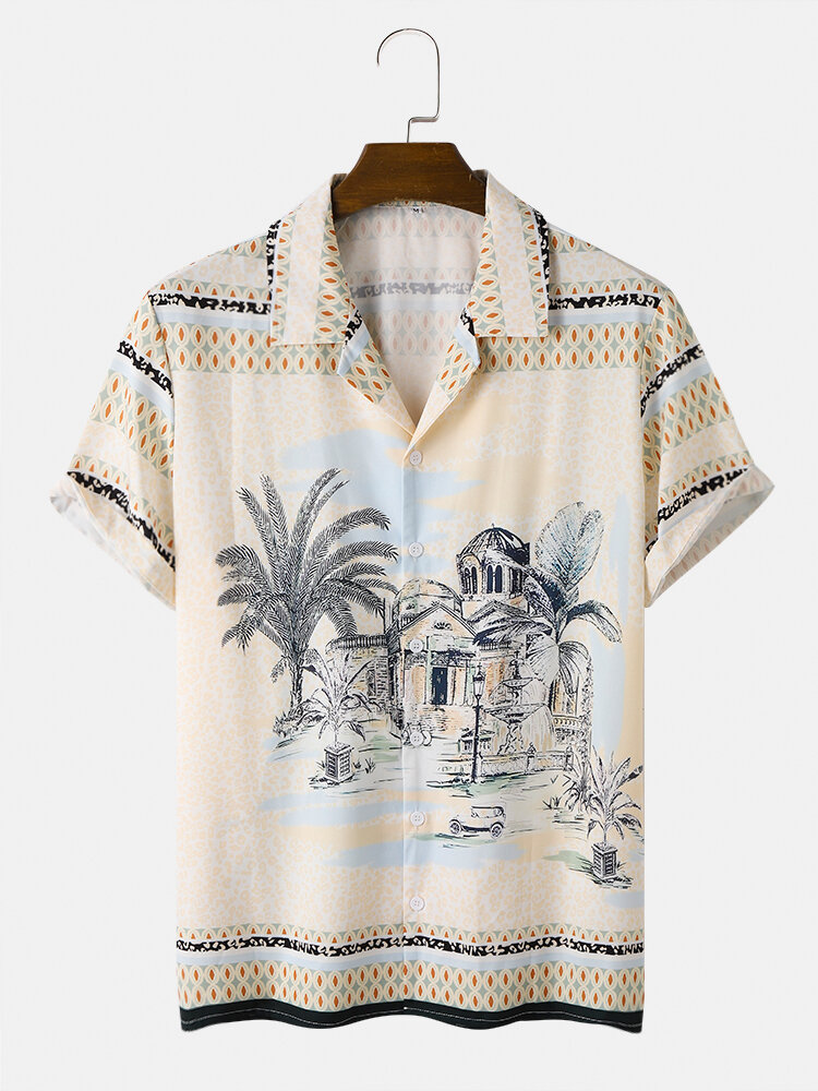 Mens Holiday Landscape Print Short Sleeve Shirts – Apricot 2XL