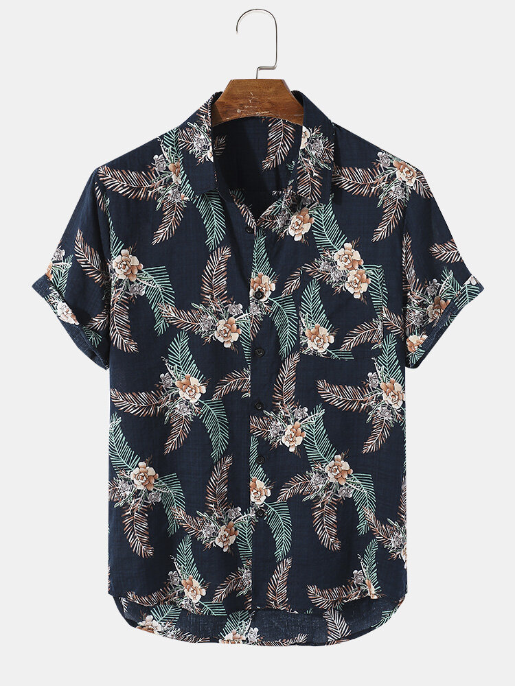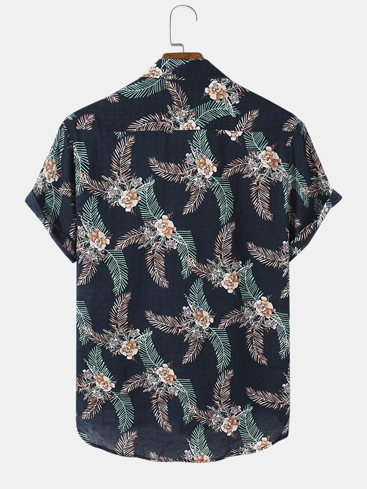 Mens Holiday Leave Pattern Short Sleeve Casual Shirts – Navy S