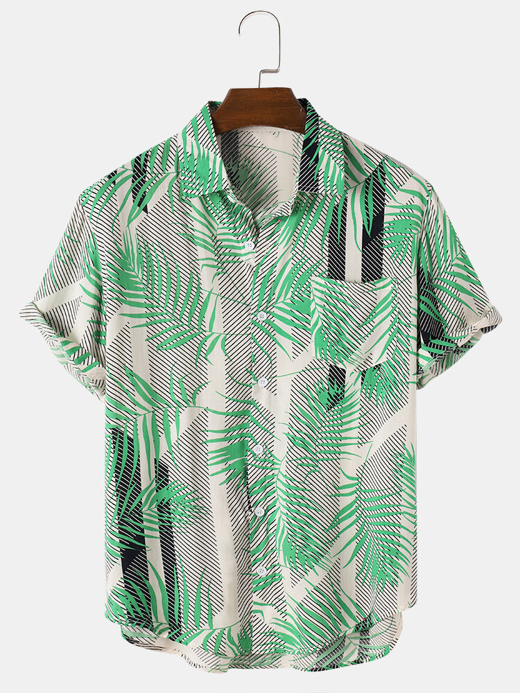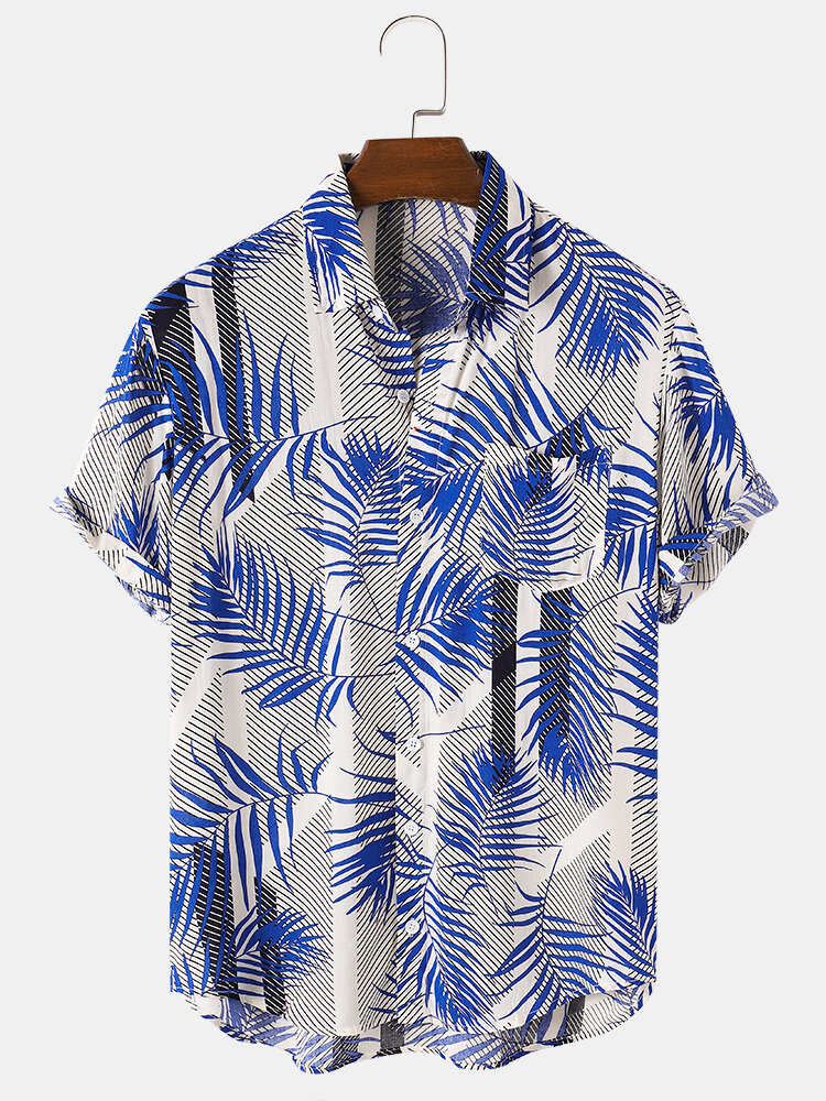 Brand:ChArmkpRDecoration:PatternFit Type:Regular FitMaterial: 65% Cotton,35% RayonNeckline:LapelPattern Type:TropicalScene:Leisure,Home,CasualSeason:SummerSize:XXL,L,S,XL,MSleeve:Short SleeveStyle:CasualThickness:Regular