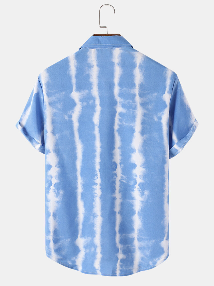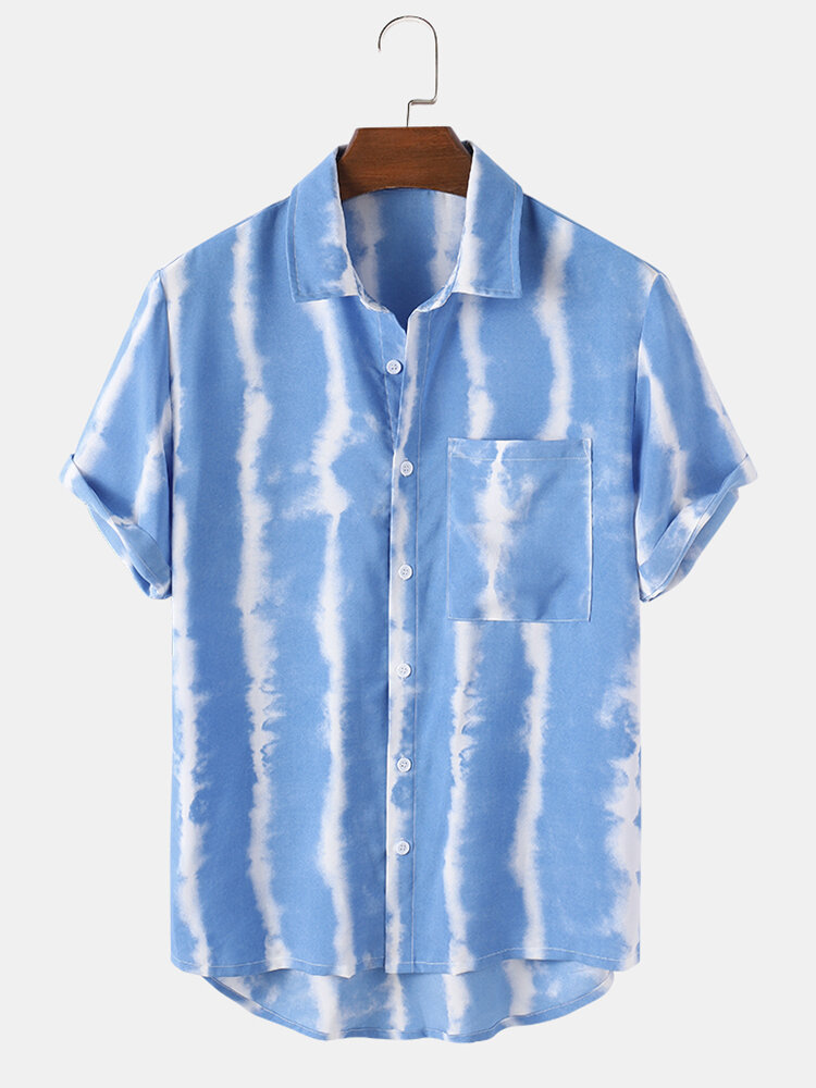 Mens Holiday Pocket Wave Short Sleeve Casual Shirts – Sky Blue S