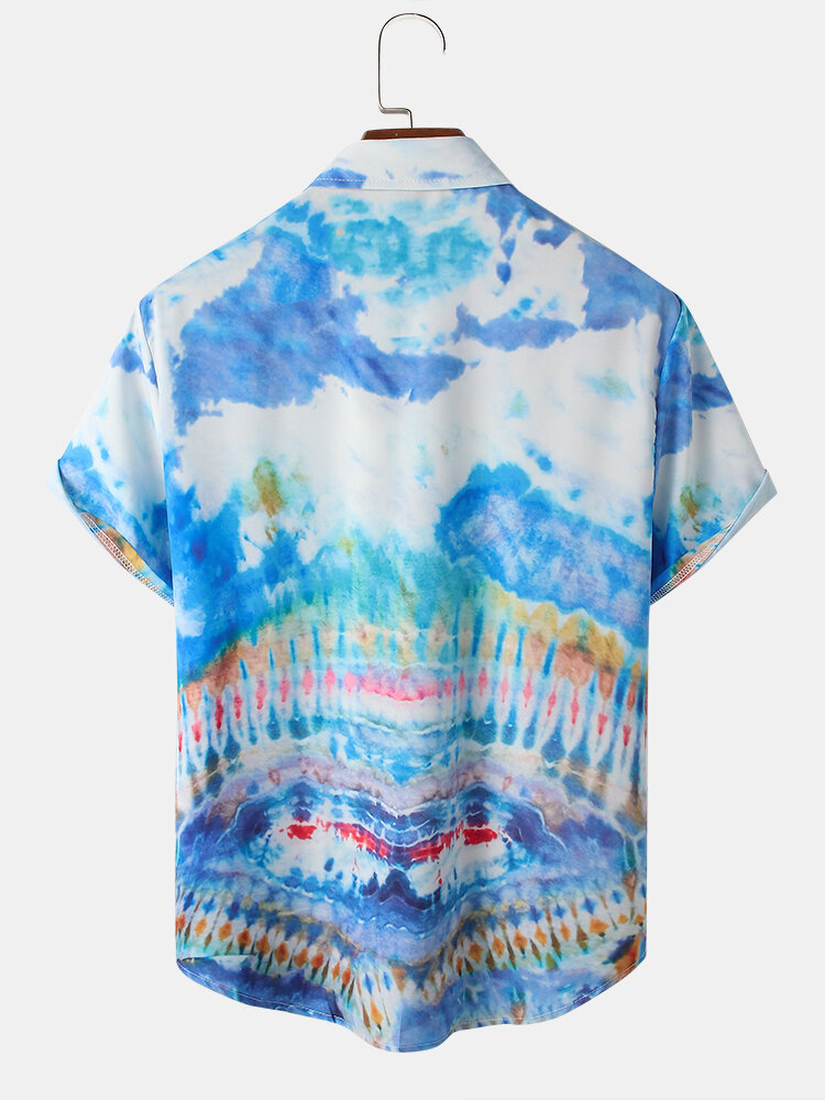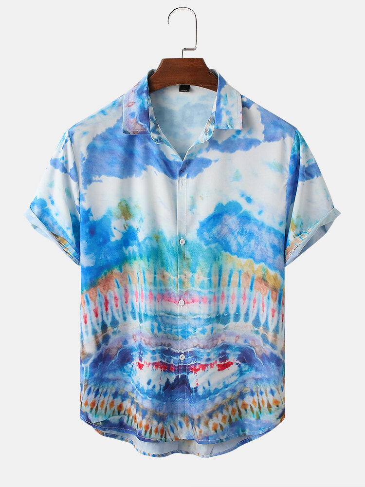 Mens Holiday Tie Dye Patterns Print Casual Shirts – Blue L