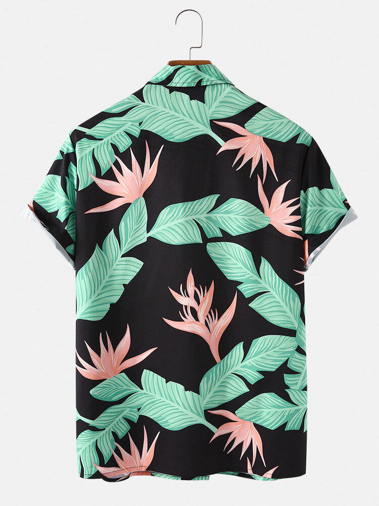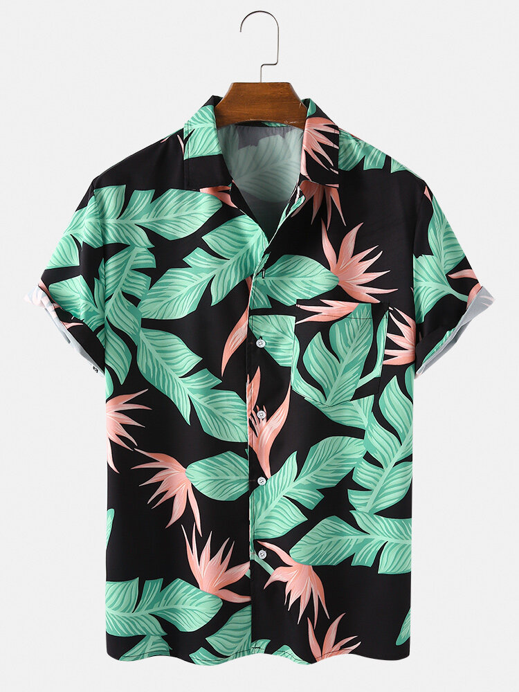 Brand:ChArmkpRDecoration:Pocket,ButtonFit Type:Regular FitMaterial:PolyesterNeckline:LapelPattern Type:Tropical,PlantsScene:Leisure,Home,Beach,CasualSeason:SummerSize:XXL,L,S,XL,MSleeve:Short SleeveStyle:Casual,Hawaii Style