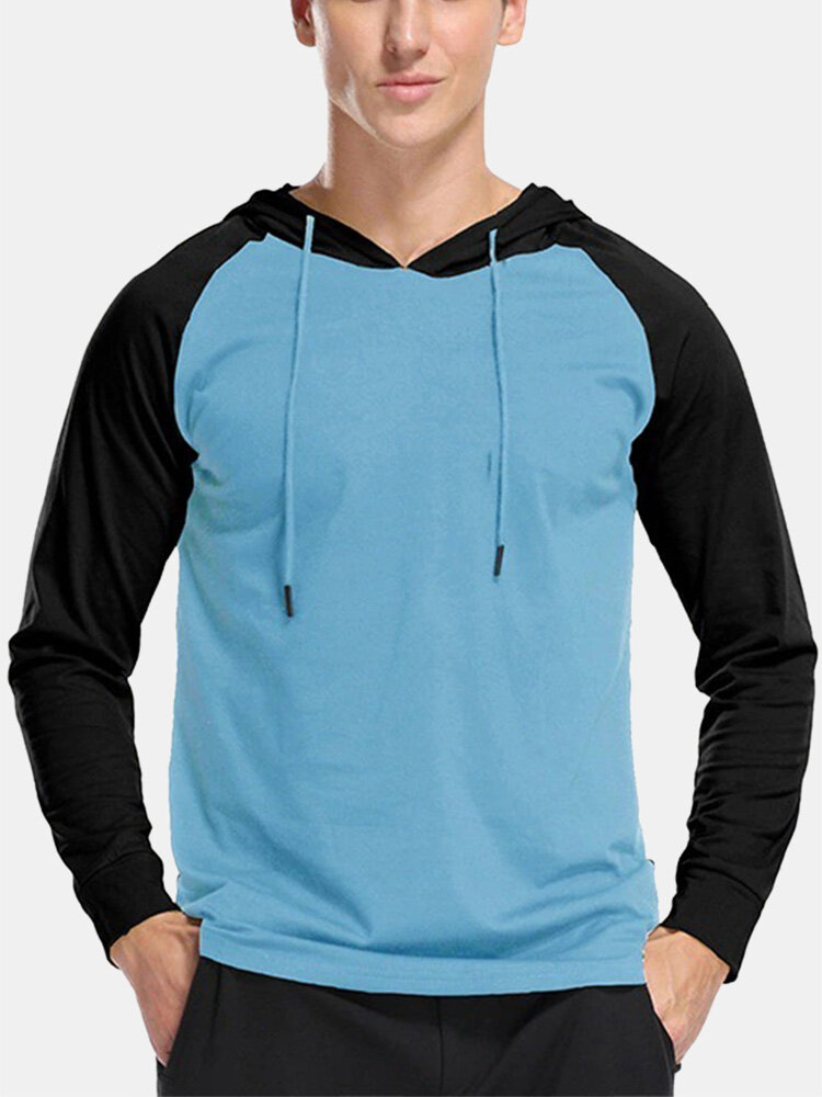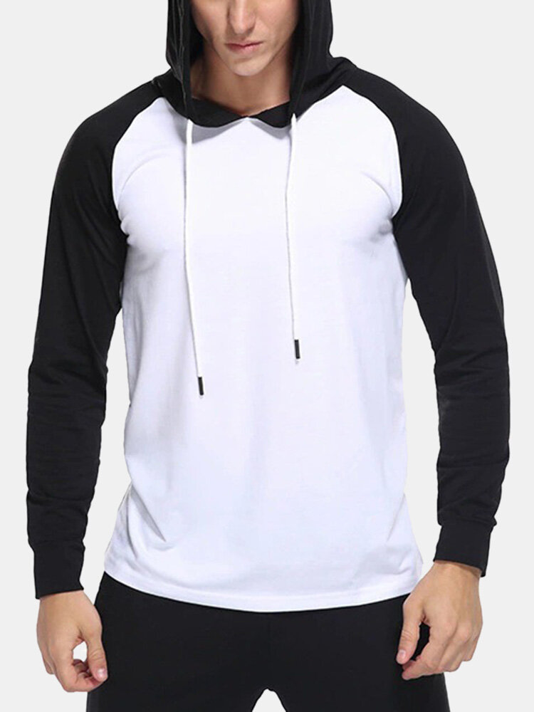 Mens Hooded Raglan Color Matching Drawstring Hoodies – White L