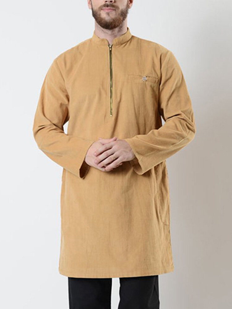 Men’s Indian Kurta Abaya Arabic Long Sleeve Kaftan Tops Arab Middle East Dress Kaftan – S Red