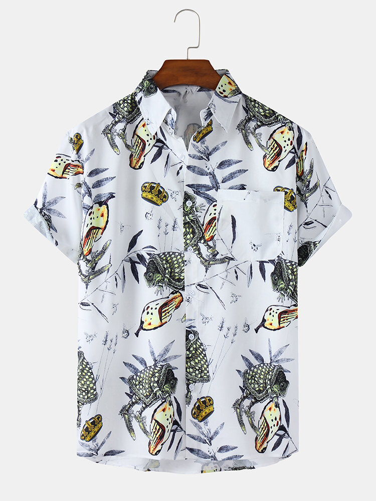 Description:Decoration:PocketFit Type:Regular FitMaterial:VinylonNeckline:LapelPattern Type:AnimalScene:Leisure,Home,CasualSeason:SummerSize:XXL,L,S,XL,MSleeve:Short SleeveStyle:Casual