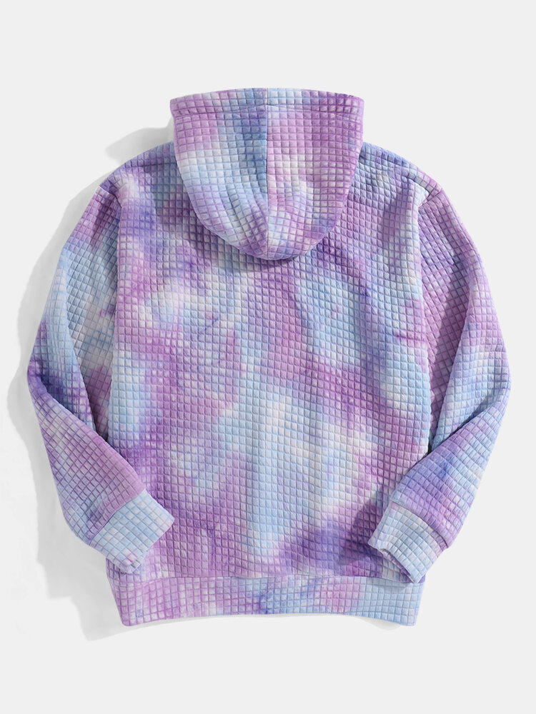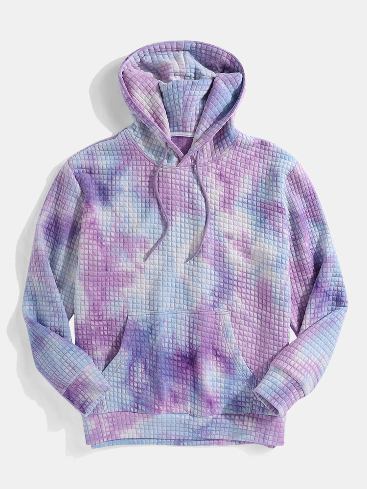 Mens Jacquard Tie-Dye Kangaroo Pocket Long Sleeve Hoodies – Pink S