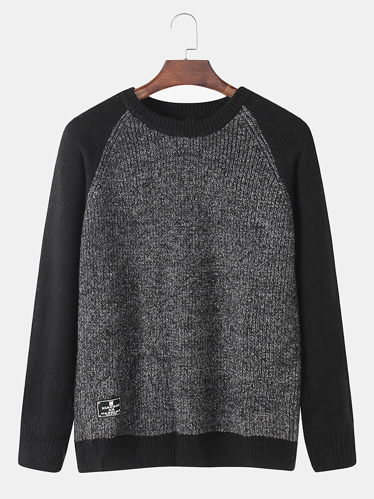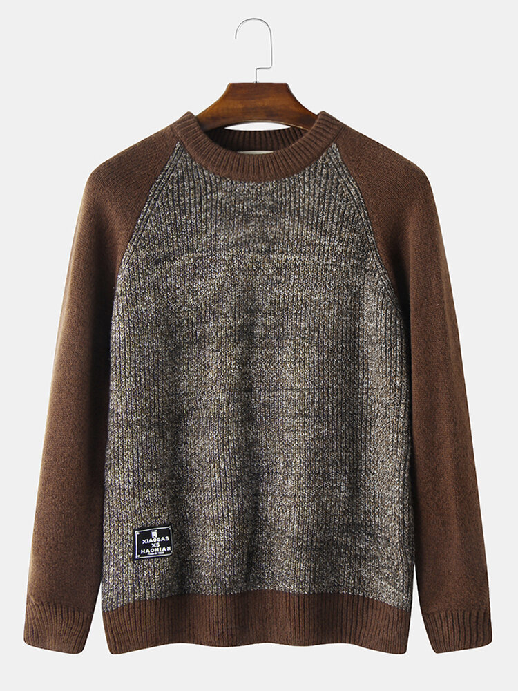 Mens Knitted Round Neck Raglan Sleeve Casual Pullover Sweaters – M Coffee