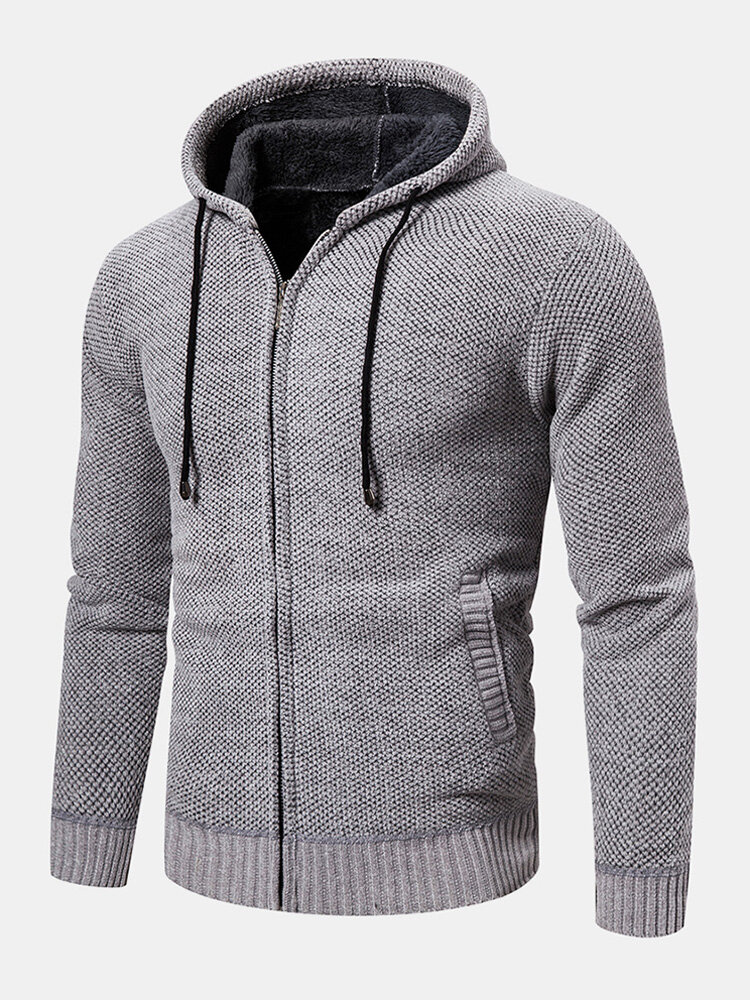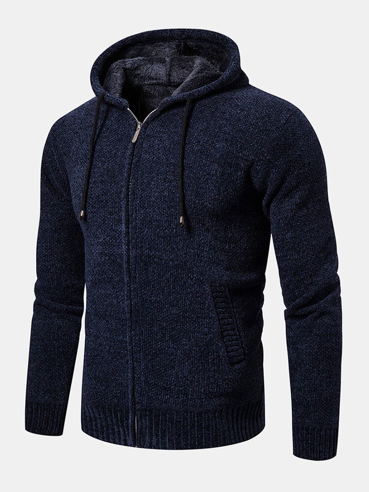 Mens Knitted Zipper Front Solid Color Warm Long Sleeve Hooded Sweater Hoodie Jacket – S Black