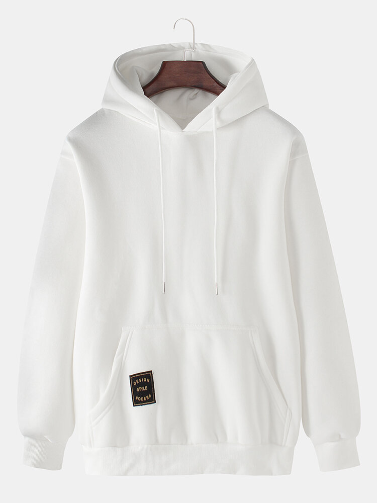 Mens Label Simple Drop Shoulder Solid Color ;Long Sleeve Hoodies – Black XL