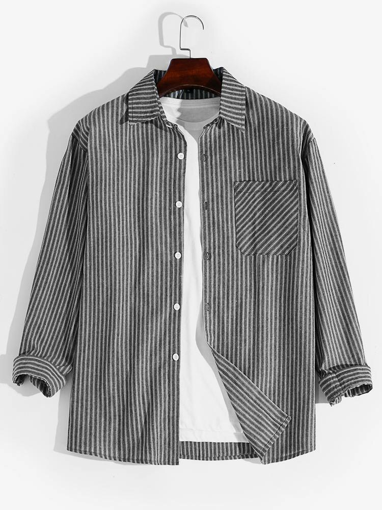 Decoration:Pocket,ButtonFit Type:Loose FitMaterial:Cotton,PolyesterNeckline:LapelPattern Type:StripedScene:Leisure,Home,CasualSeason:Spring,Autumn,WinterSize:XXXL,XXL,L,XL,MSleeve:Long SleeveStyle:Vintage,CasualThickness:Regular