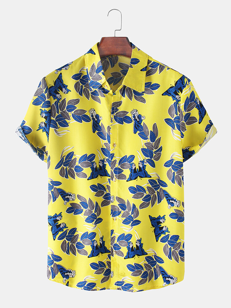 Description:Fit Type:Regular FitMaterial:PolyesterNeckline:LapelPattern Type:PlantsScene:Leisure,Home,CasualSeason:SummerSize:L,S,XL,MSleeve:Short SleeveStyle:Casual,Hawaii Style