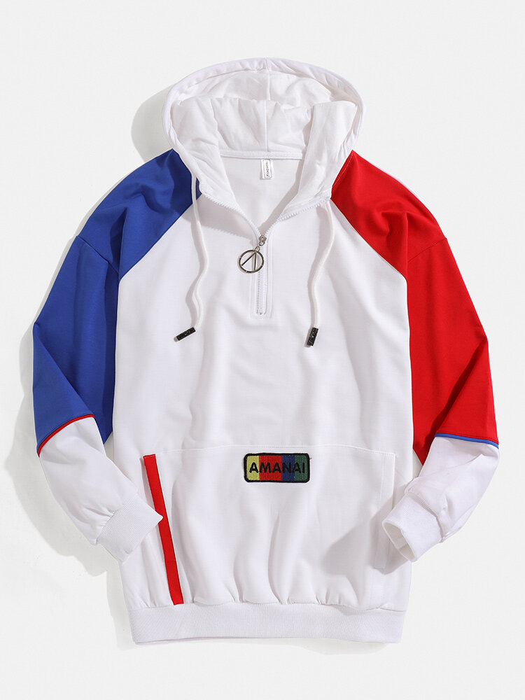 Mens Letter Embroidery Contrasting Colors Patchwork Drop Shoulder Hoodies – Black M