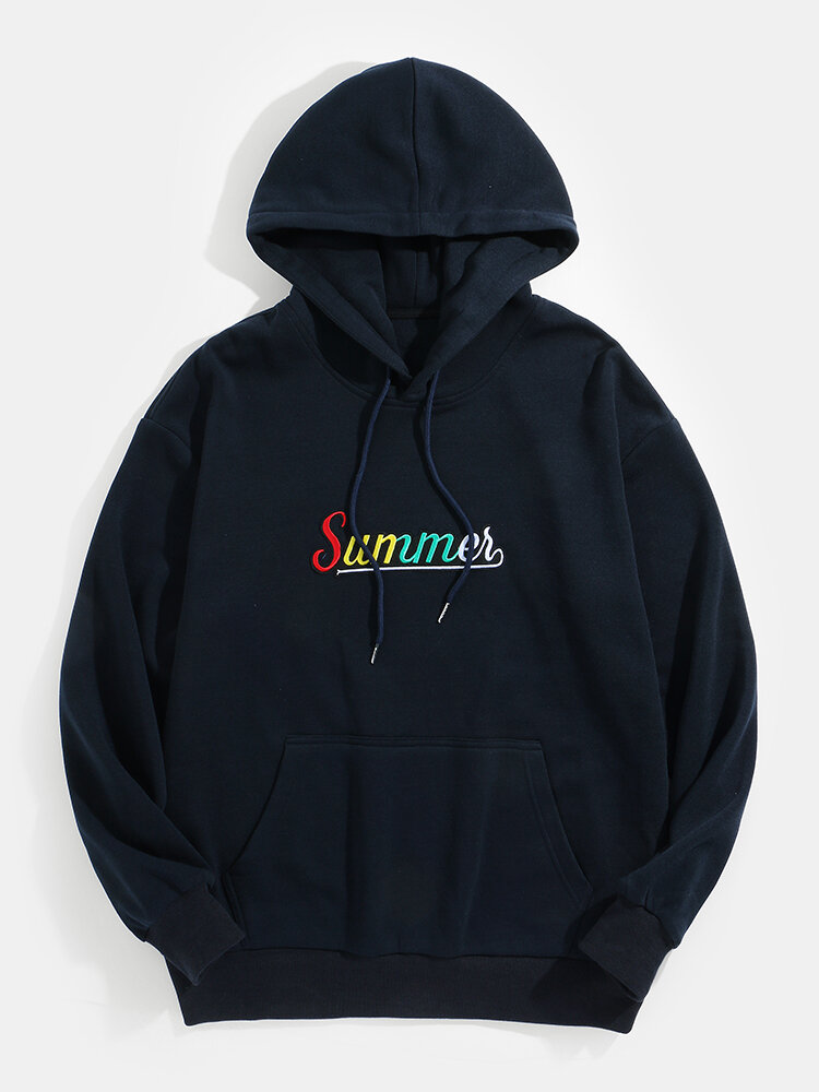 Mens Letter Embroidery Drawstring Hoodies With Kangaroo Pocket – Blue S
