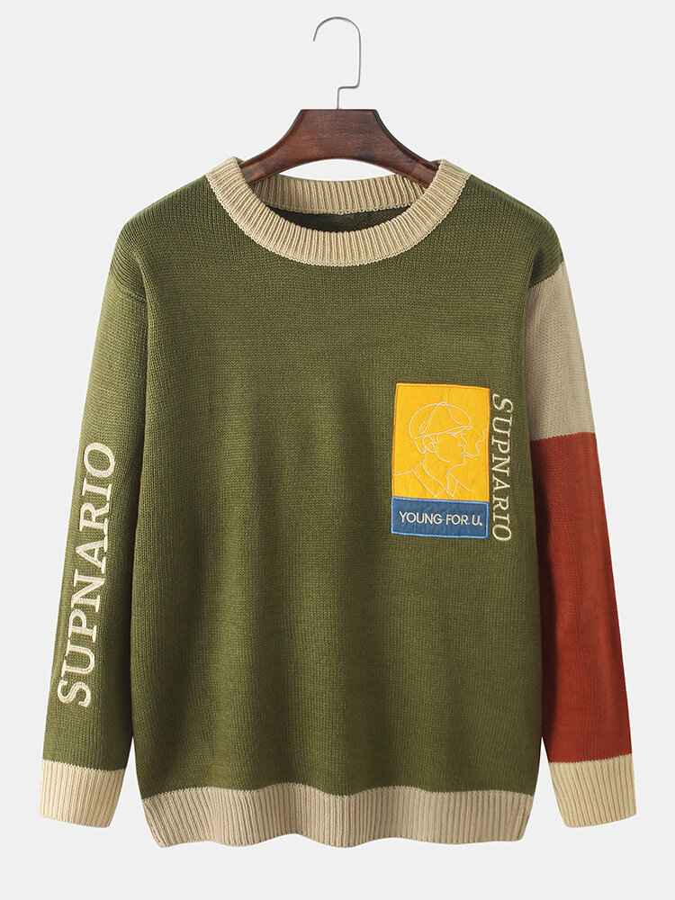 Mens Letter Graphic Embroidered Long Sleeve Knitted Sweaters – 5XL Green