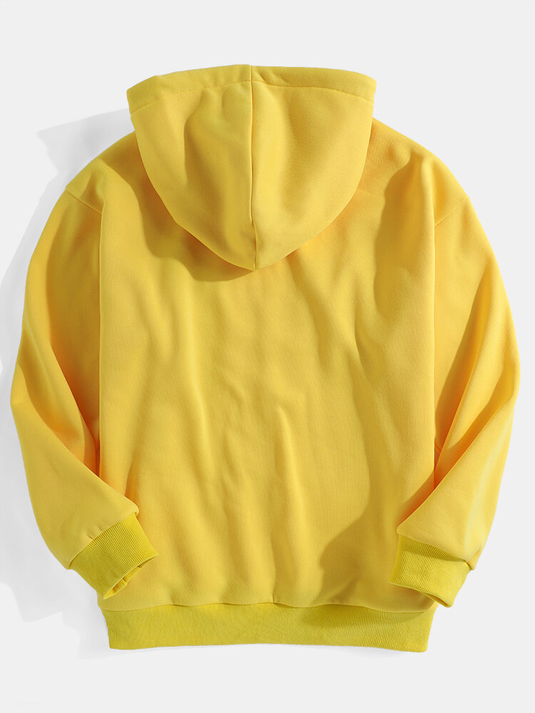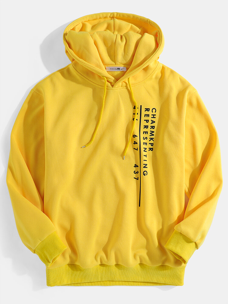 Mens Letter Print Long Sleeve Yellow Drawstring Hoodies – S Yellow