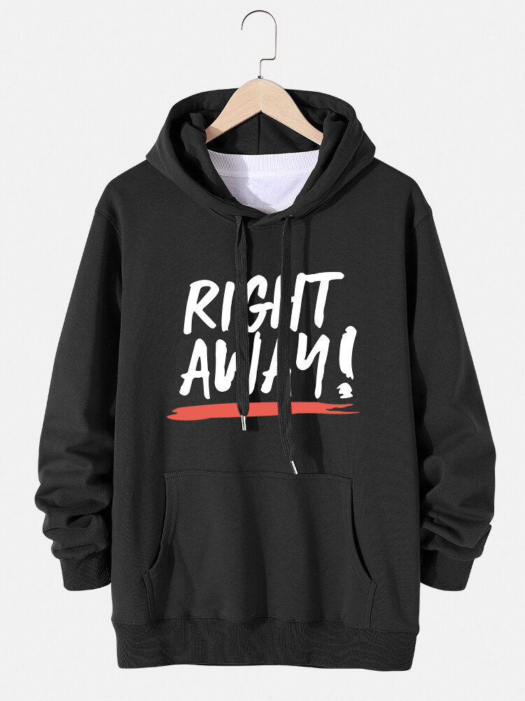 Mens Letter Slogan Print Cotton Drawstring Hoodies With Kangaroo Pocket – Black XL