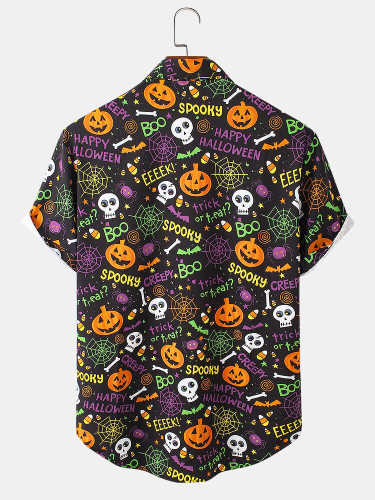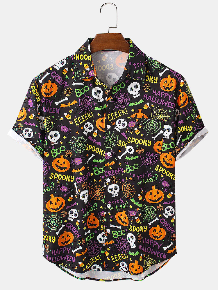 Mens Light Cartoon Letter Print Casual Shirts – Black S