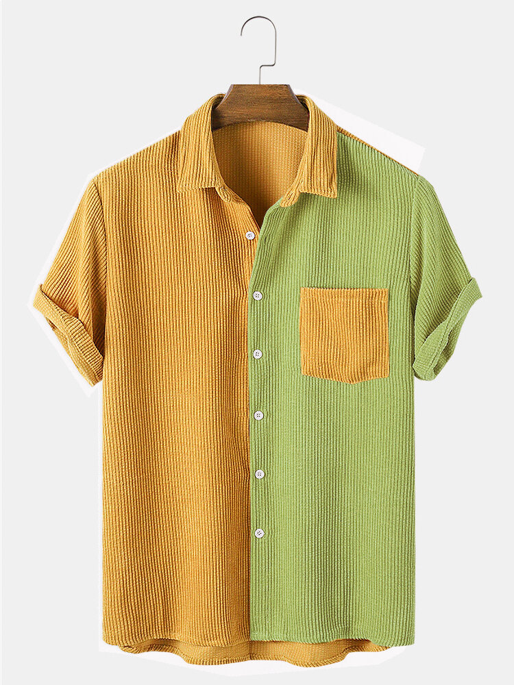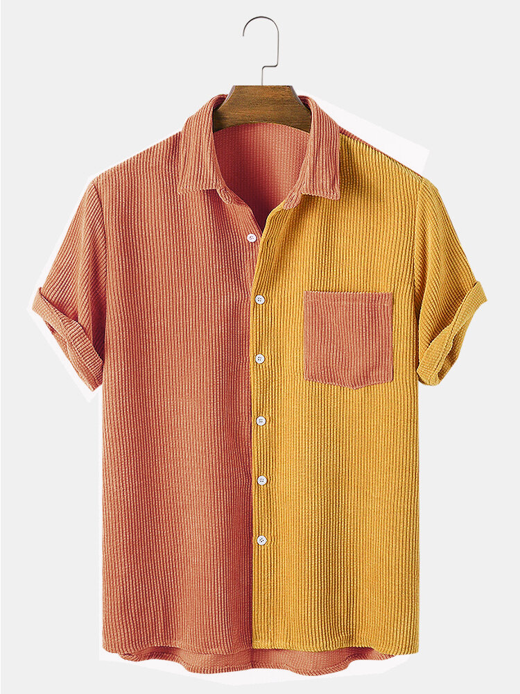 Mens Light Corduroy Patchwork Pocket Breathable Casual Shirts – Pink S