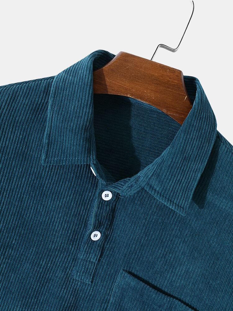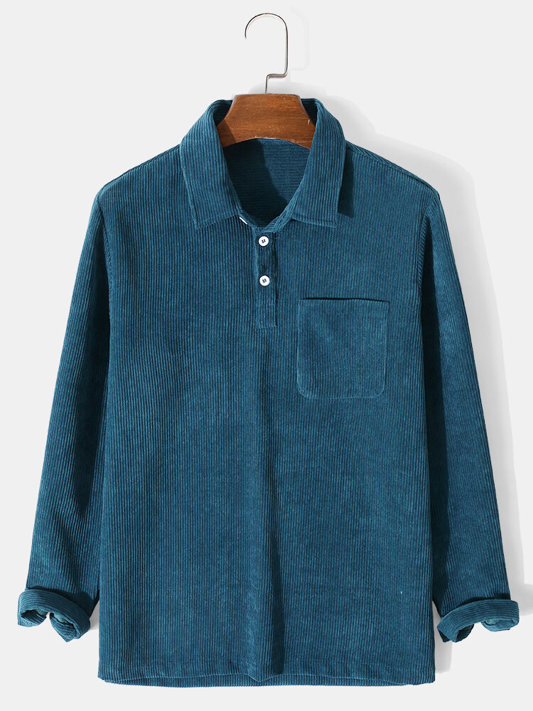 Mens Long-sleeve Pullover button Green Corduroy Shirt – Green S