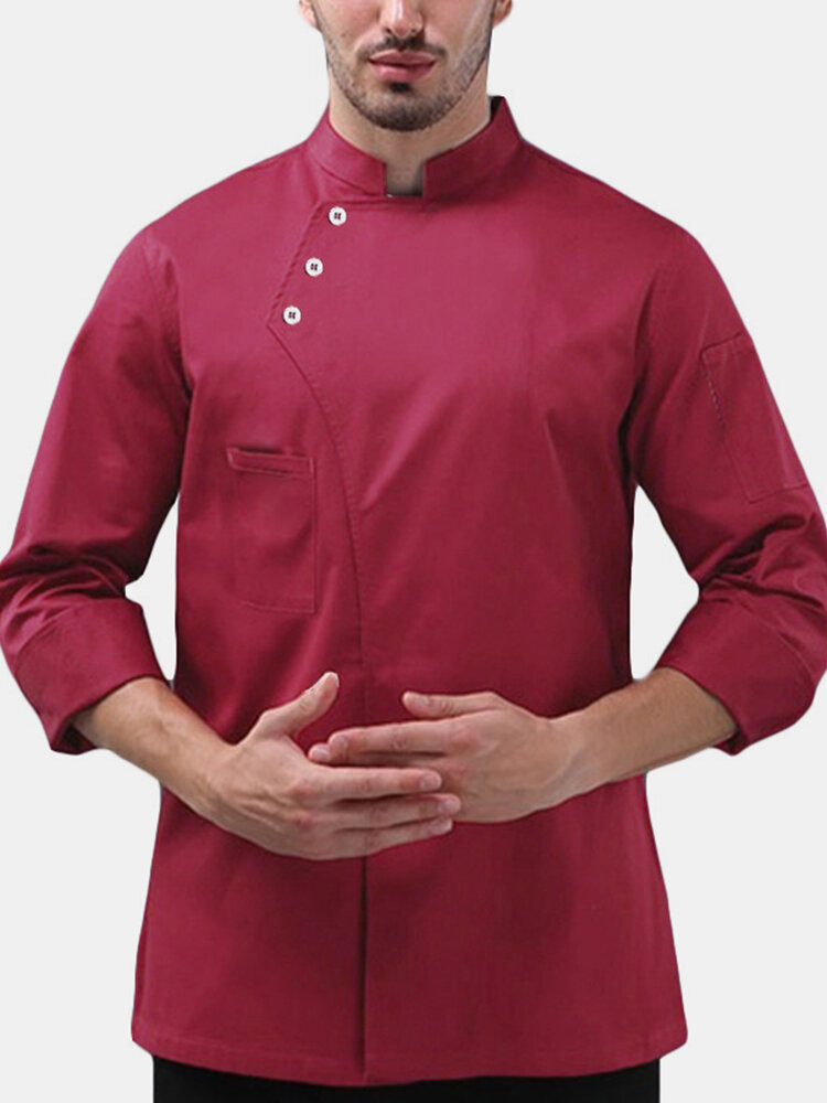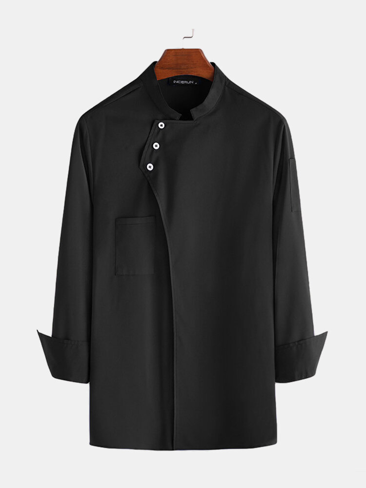 Mens Long Sleeve Solid Color Buttons Chef Workwear Shirts – 2XL Black