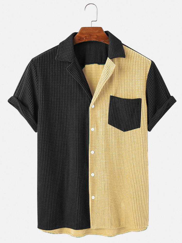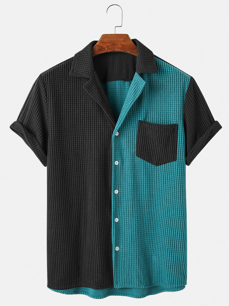 Brand:ChArmkpRDecoration:Pocket,SplicingFit Type:Regular FitMaterial:PolyesterNeckline:LapelPattern Type:PatchworkScene:Leisure,Home,CasualSeason:SummerSize:XXL,L,S,XL,MSleeve:Short SleeveStyle:Vintage,CasualThickness:Regular
