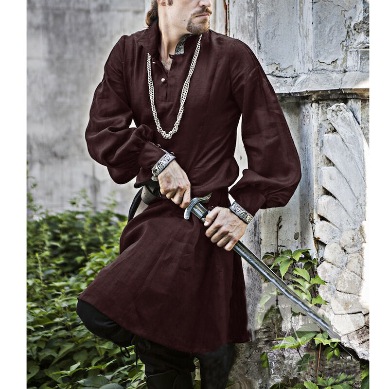 Mens Medieval Renaissance Long Sleeve Party Tunic Norseman Saxon Cosplay Costume – XL Black
