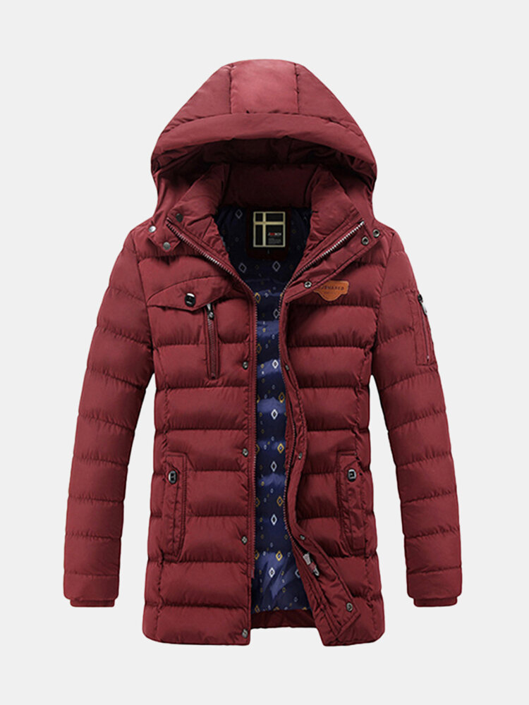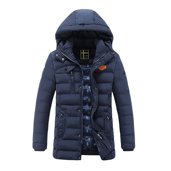 Mens Mid-long Hooded Warm Puffer Zipper Padded Jacket Parka – M Khaki