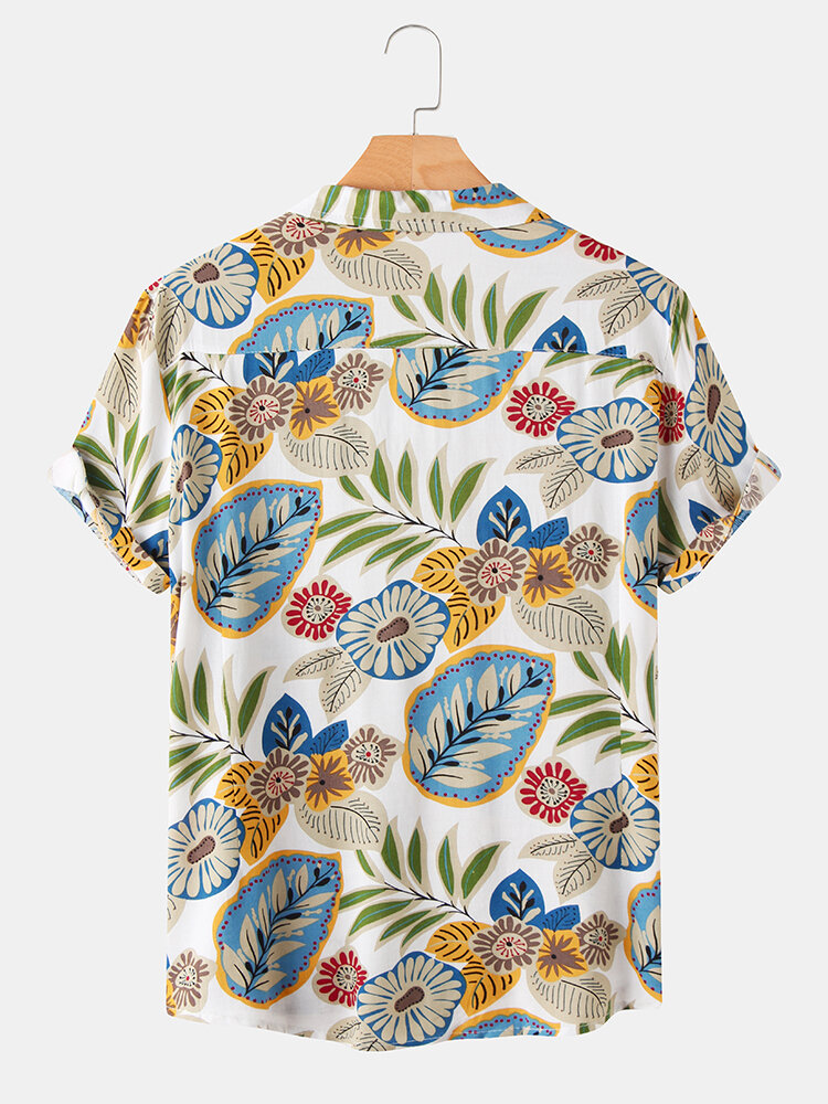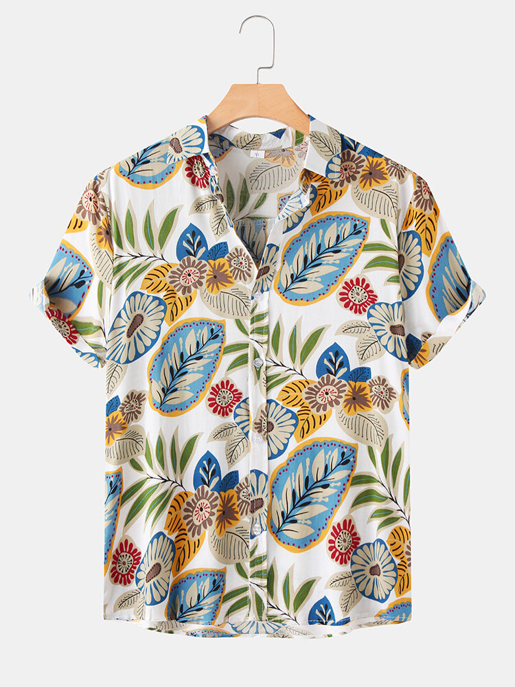 Mens Mixcolor Cartoon Leaf Print Short Sleeve Casual Holiday Shirts – Blue S
