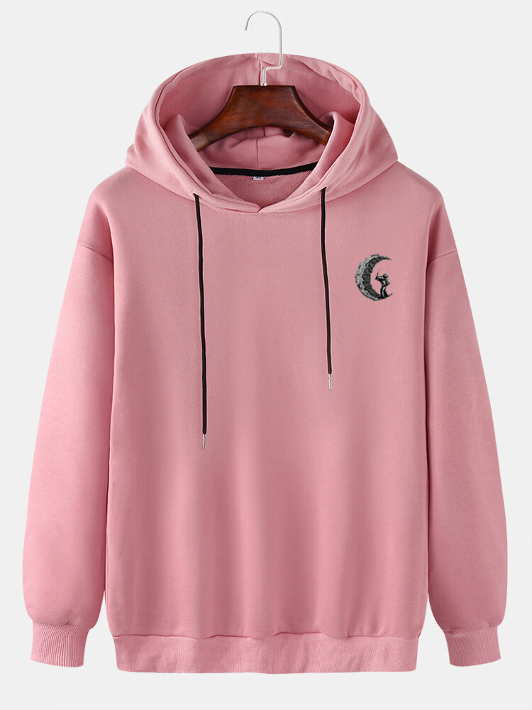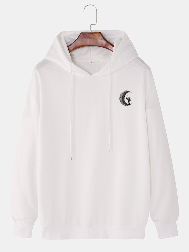 Mens Moon Astronaut Solid Color Simple Casual Pullover Hoodie – White S