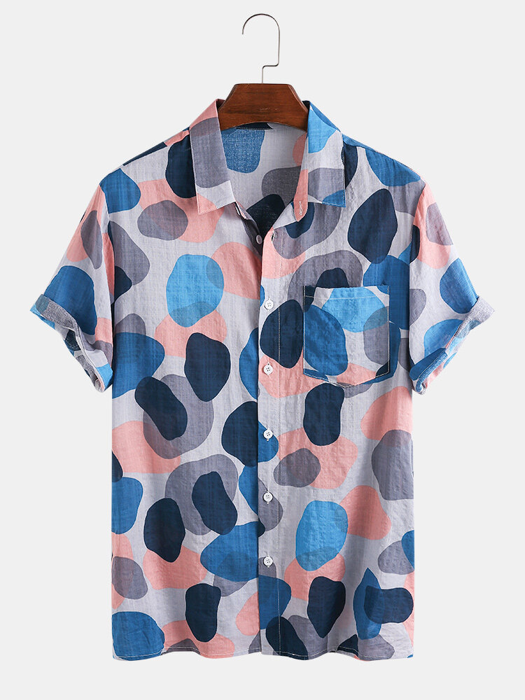 Description:Decoration:Pocket,ButtonFit Type:Regular FitMaterial:Rayon,CottonNeckline:LapelPattern Type:Polka DotScene:Leisure,CasualSeason:SummerSize:XXXL,XXL,L,XL,MSleeve:Short SleeveStyle:Casual