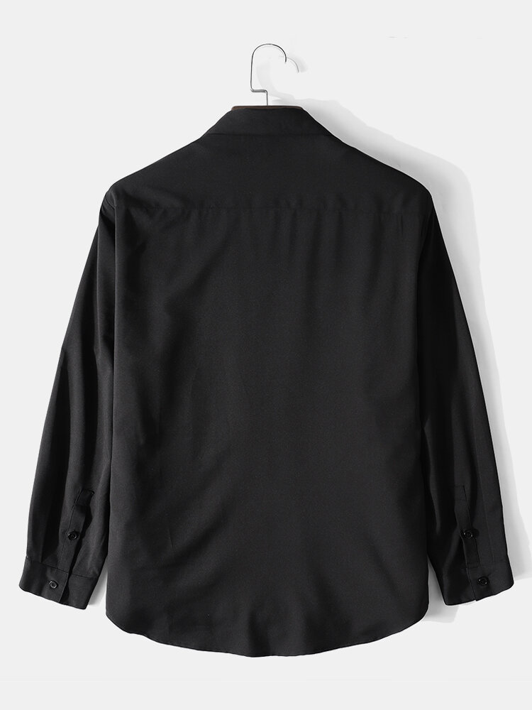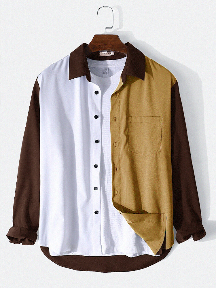 Mens Multi Color Patchwork Chest Pocket Long Sleeve Casual Shirts – Black S