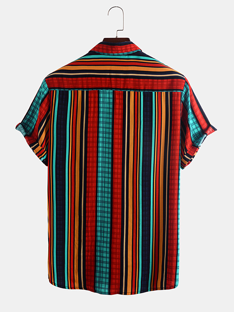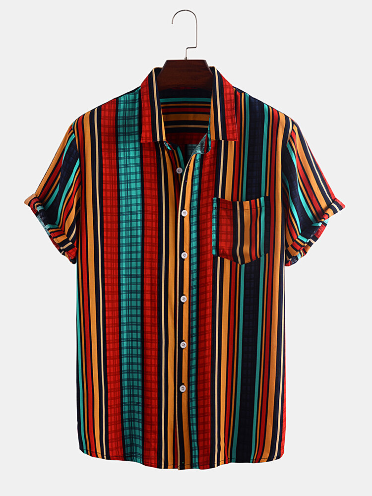 Description:Decoration:PocketMaterial:RayonNeckline:LapelPattern Type:StripedScene:Leisure,Home,Beach,CasualSeason:Spring,SummerSize:XXXL,XXL,L,XL,MSleeve:Short SleeveStyle:Casual,Hawaii StyleThickness:Regular
