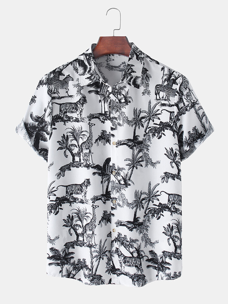 Description:Fit Type:Regular FitMaterial:PolyesterNeckline:LapelPattern Type:Animal,PlantsScene:Leisure,Home,CasualSeason:SummerSize:L,S,XL,MSleeve:Short SleeveStyle:Casual