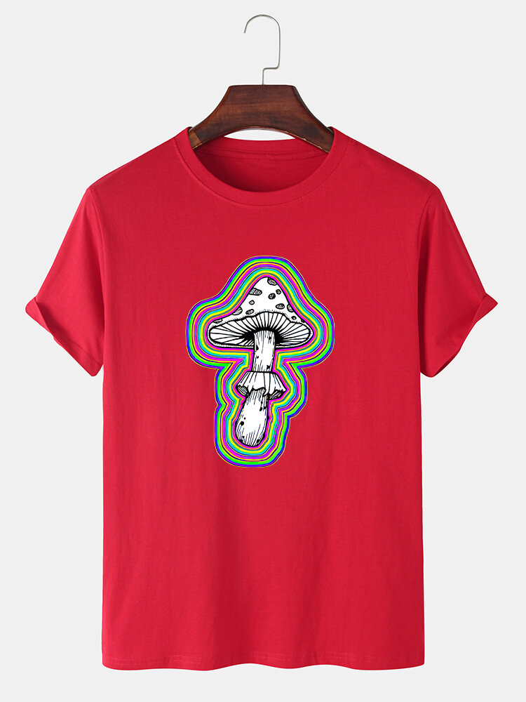Mens Mushroom Graphic Print 100% Cotton O-Neck Casual Short Sleeve T-Shirt – Navy S