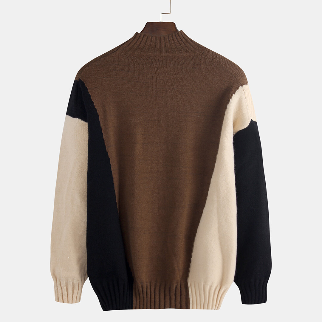Men’s New Casual Hong Kong Style Stitching Hit Color Loose Sweaters – M Coffee