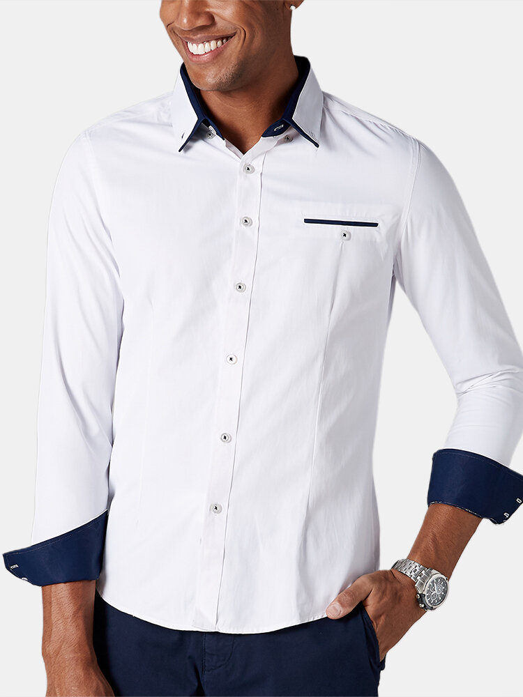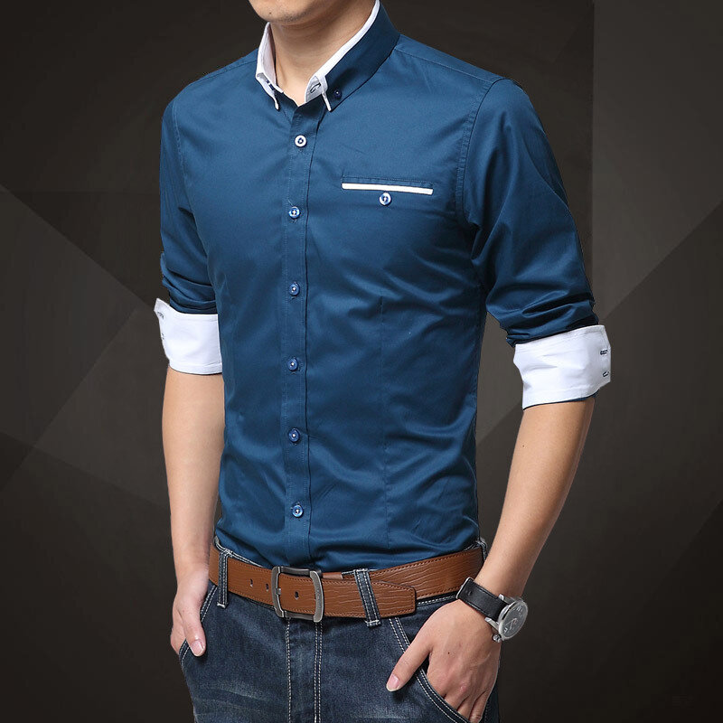 Item Type:ShirtMaterial:CottonThickness:RegularFit Type:FitStyle:Casual  Color:Light Blue,Navy Blue,Gray,Lack Blue,Earth Yellow,WhiteOccasion:Leisure,Everyday,WorkSeason:Spring,Fall