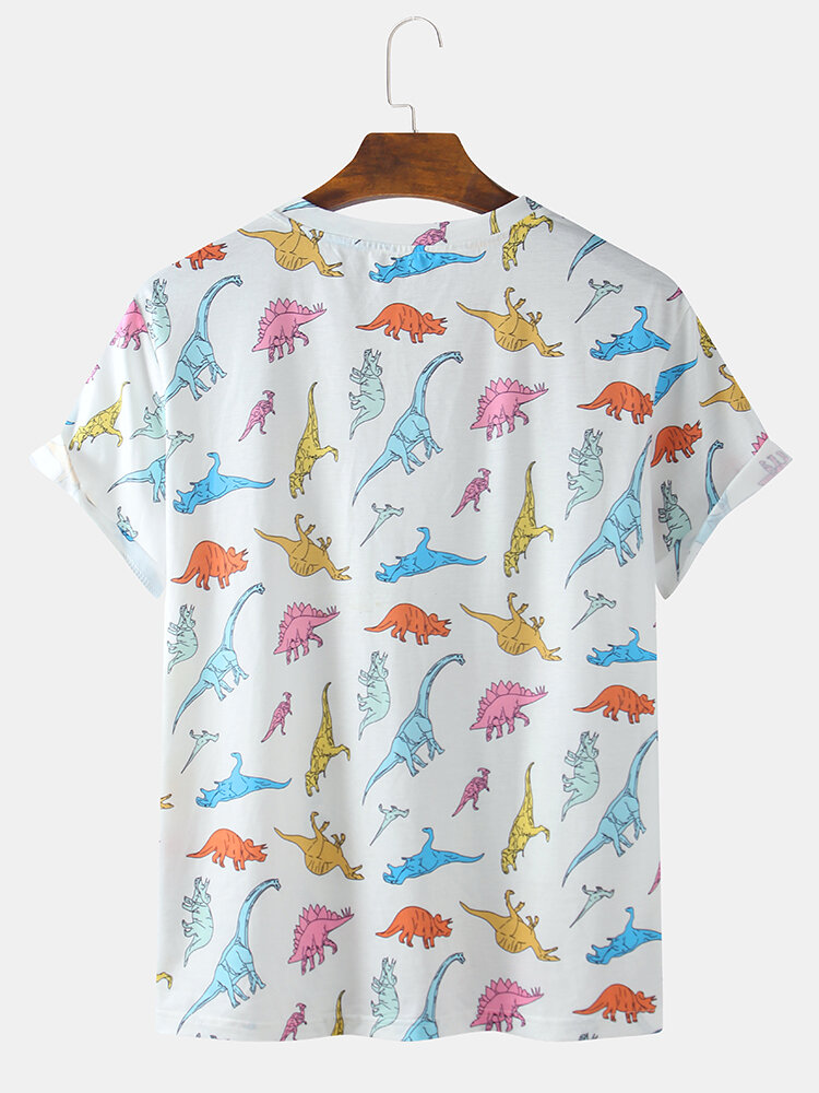 Collar:Crew NeckColor:WhiteCrafts:Printing,SewingCuff Type:Straight SleevesDecoration:Button,PatternFit Type:FitLength:RegularMaterial:PolyesterOccasion:Casual,Leisure,WorkPattern:DinosaurSeason:SummerSize:2XL,3XL,L,M,XLSleeve Length:Short SleeveStyle:Cartoon,Casual,Cute,Fashion,LeisureThickness:Regular