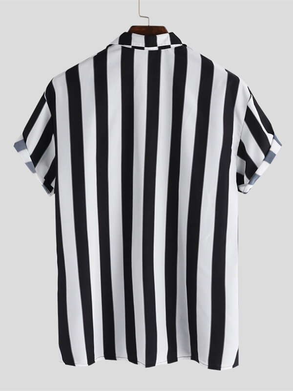 Brand:INCERUNFit Type:Loose FitMaterial:PolyesterNeckline:Revere CollarPattern Type:StripedScene:Leisure,CasualSeason:Spring,SummerSize:XXXL,XXL,L,S,XL,XXXXL,XXXXXL,MSleeve:Short SleeveStyle:CasualThickness:Regular