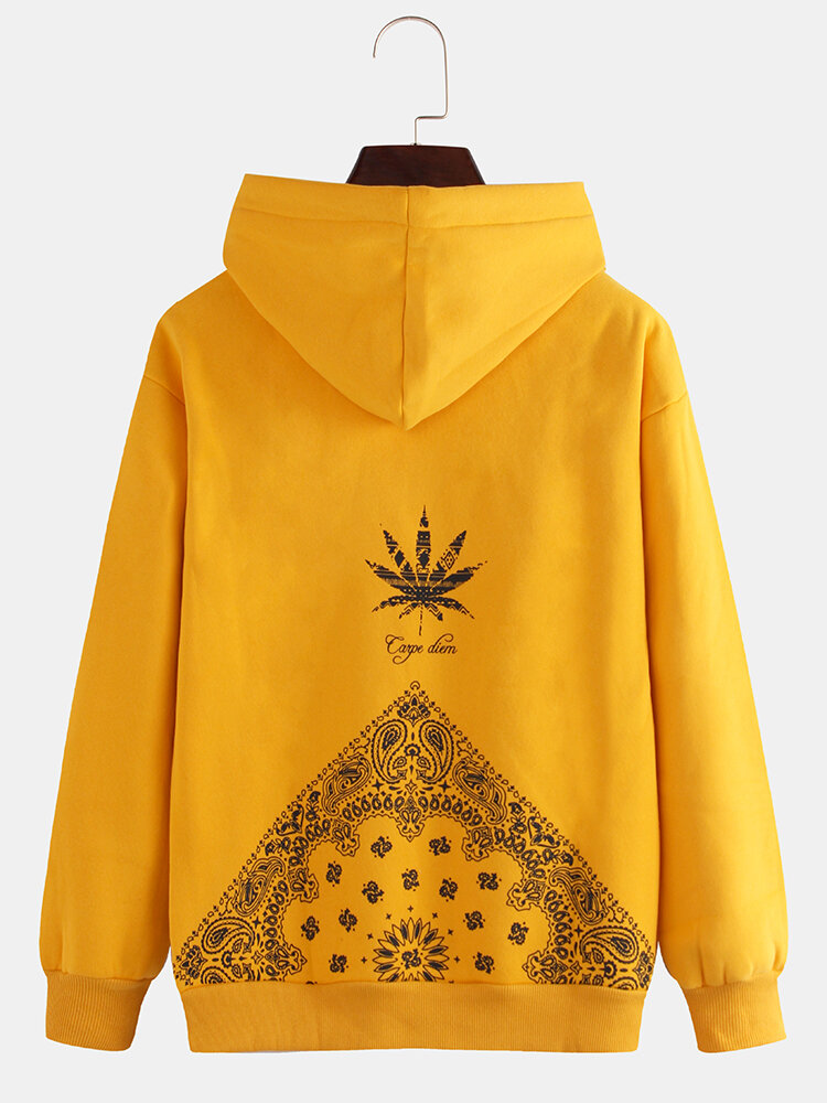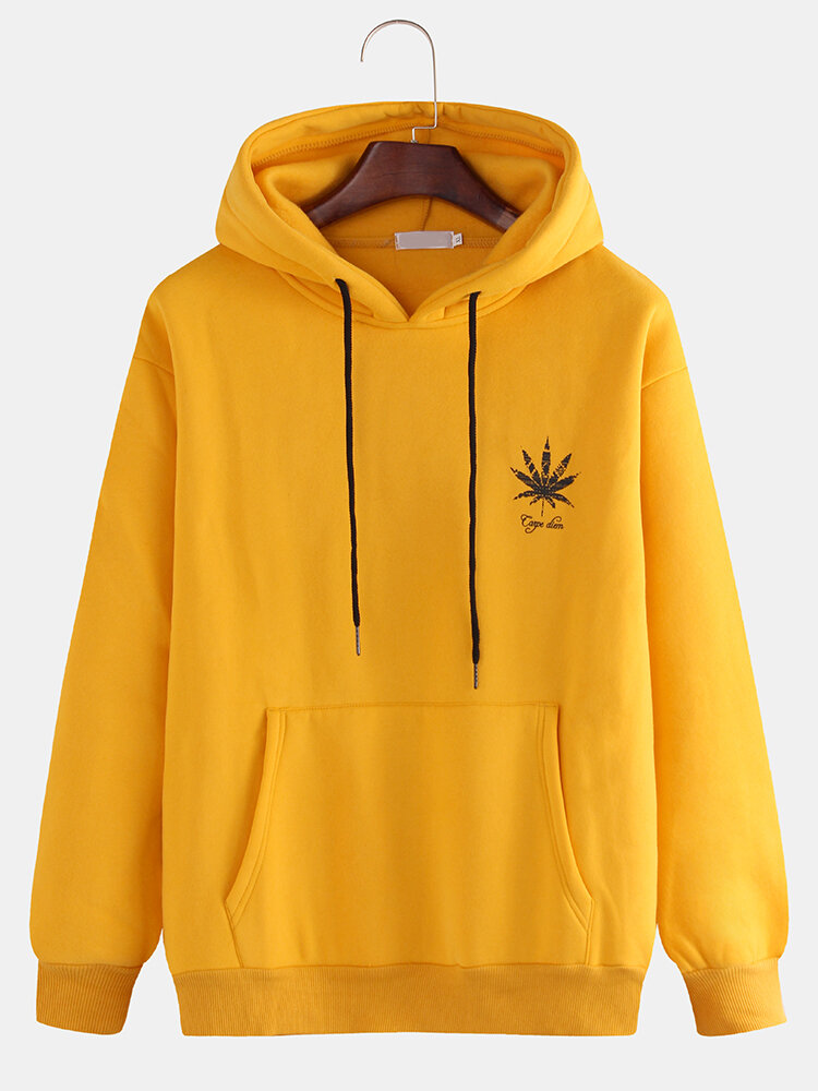 Men’s New Japanese Large Size Maple Leaf Print Plus Velvet Hooded Loose Sweatshirt – S Black