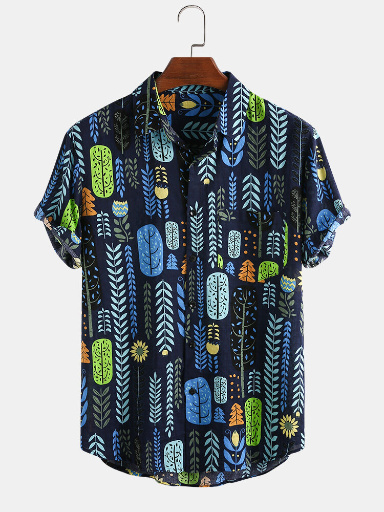 Item Type: ShirtsPattern Type: PrintGender: MenFit Type: FitStyle: Casual,FashionThickness: RegularCollar: Turn Down CollarSeason: SummerDecorations: PocketMaterial:CottonSleeve Length: Short SleeveColor: BlueCuff Type: Straight SleeveOccasion: Leisure,Home,Daylife