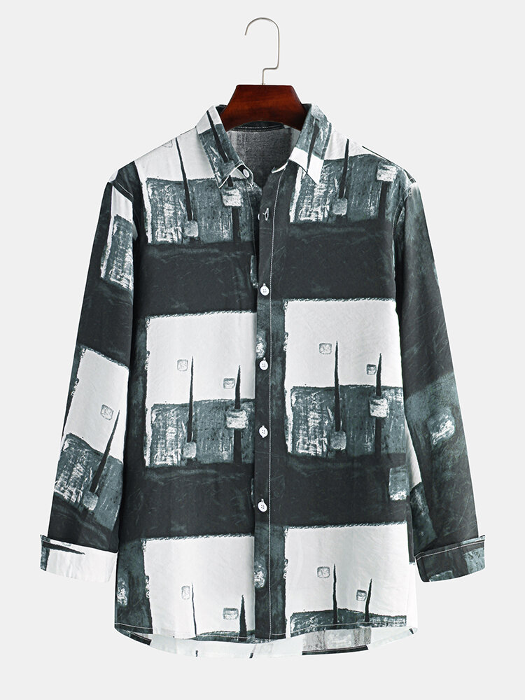 Mens New Plaid Long Sleeved Trendy Fashion Loose Casual Wild Shirts – L Gray White