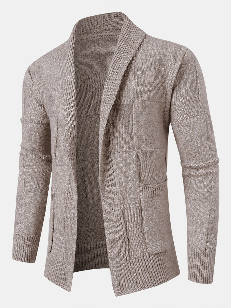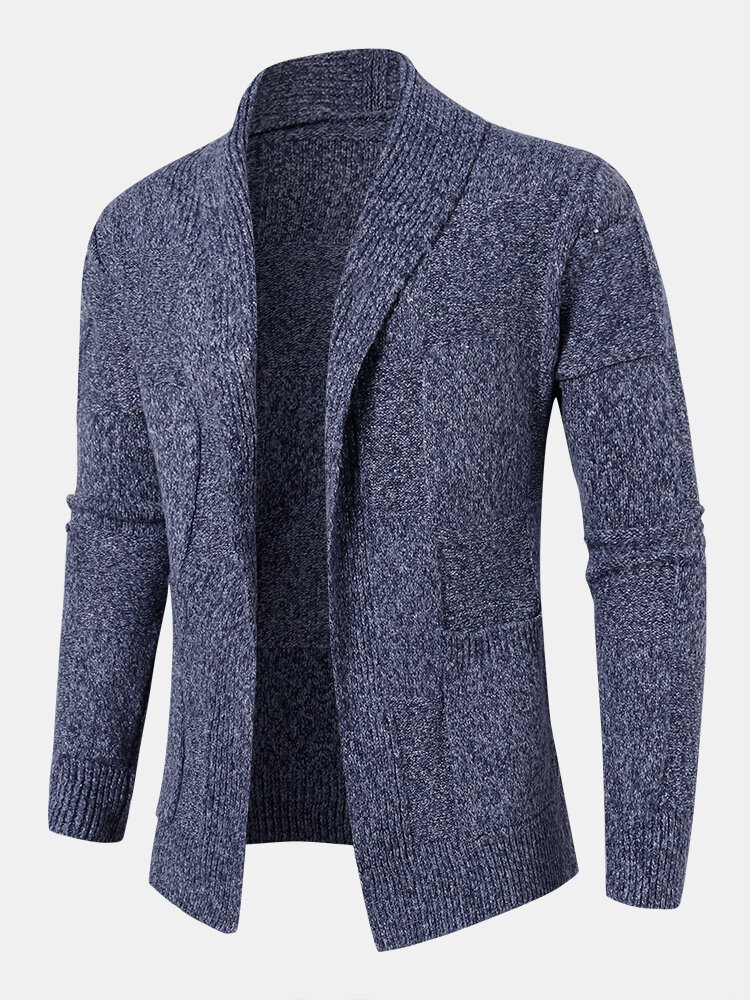 Mens Open Front Solid Color Knitted Long Sleeve Sweater Cardigans With Pocket – Dark Grey 2XL