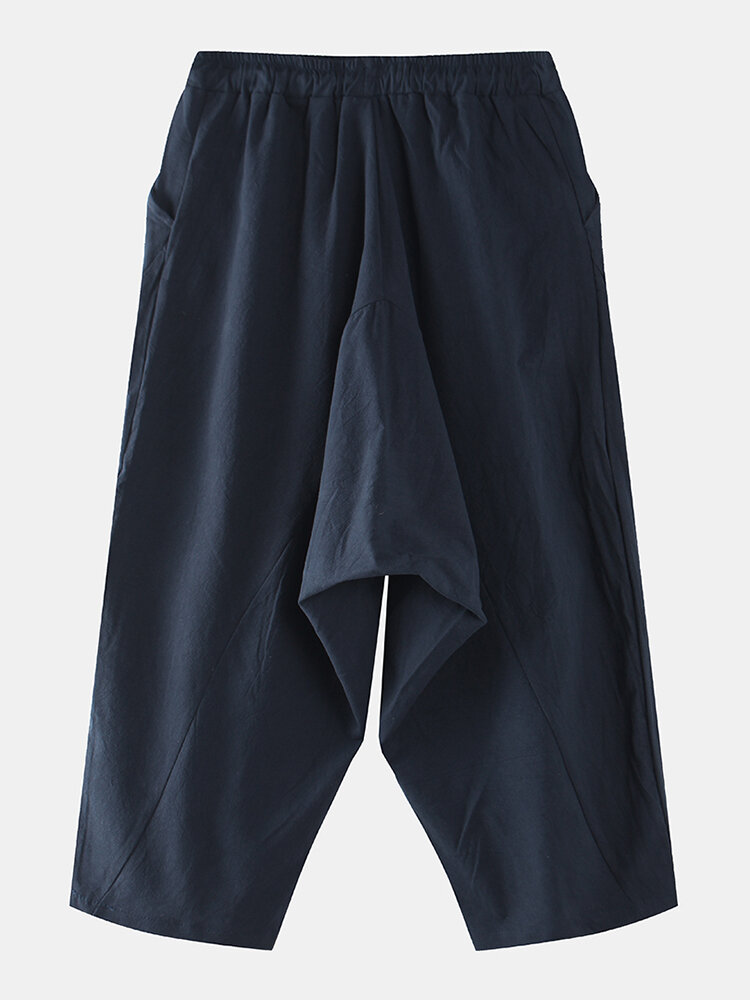 Item Type: PantsFit Type: RegularClosure Type: Elastic Waist Gender: MenDecoration: PocketMaterial:FlaxThickness: StandardStyle: Casual,FashionSeason: Spring,AutumnWaist Type: Mid RiseColor:Blue,BlackLength: LongOccasion: Leisure,Daylife