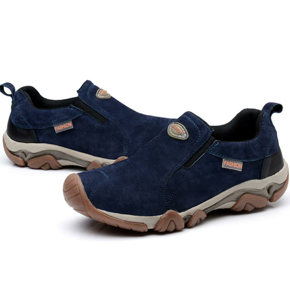Mens Outdoor Breathable Athletic Shoes Cowhide TPR Elastic Slip-on Sport Sneakers – 10 Blue