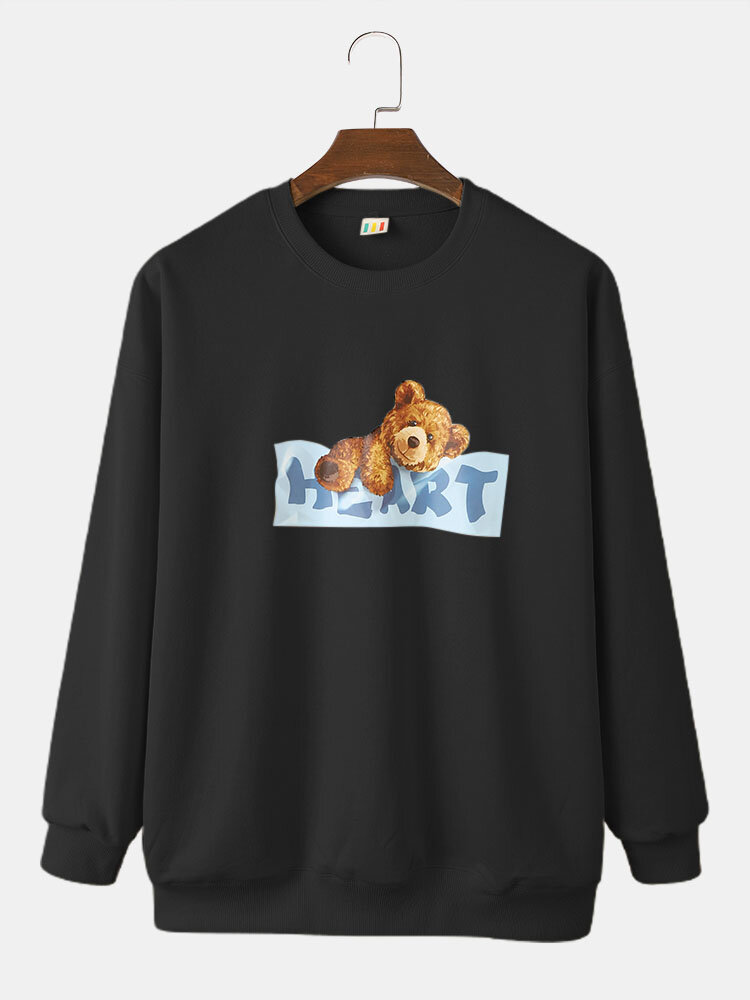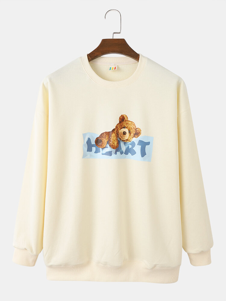 Mens Oversize Bear and Letter Print Dynamic Crew Collar Sweatshirt – Apricot XL