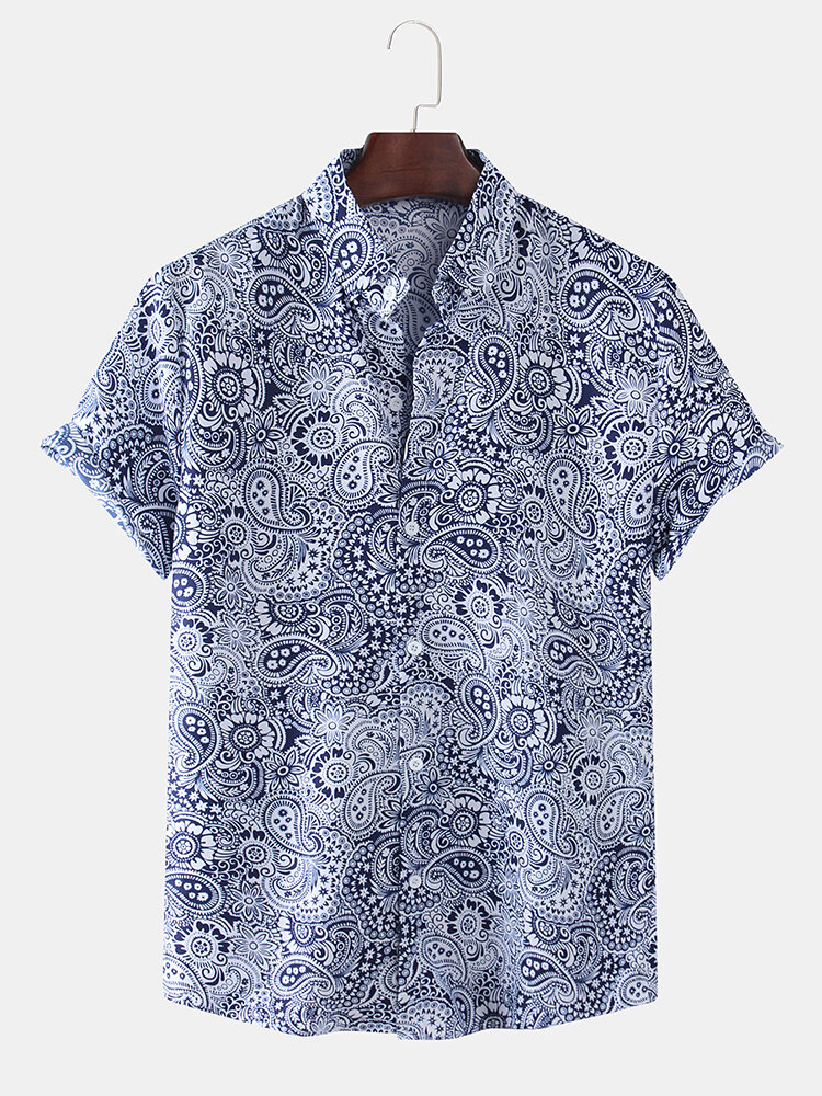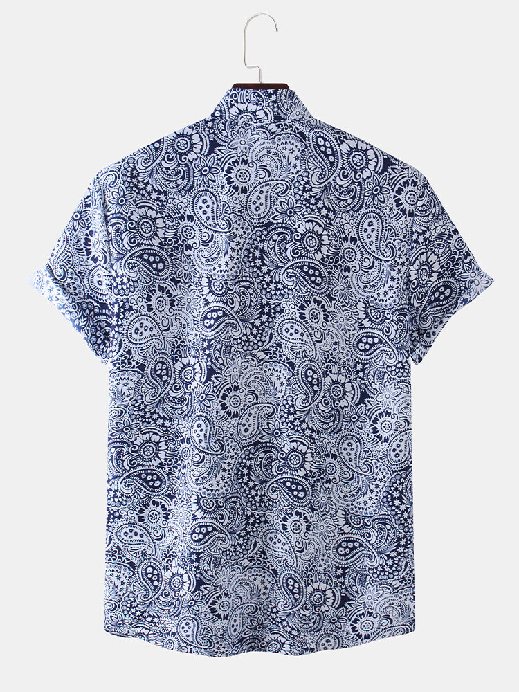 Mens Paisley Patterns Printing Breathable Fit Casual Shirts – Black S