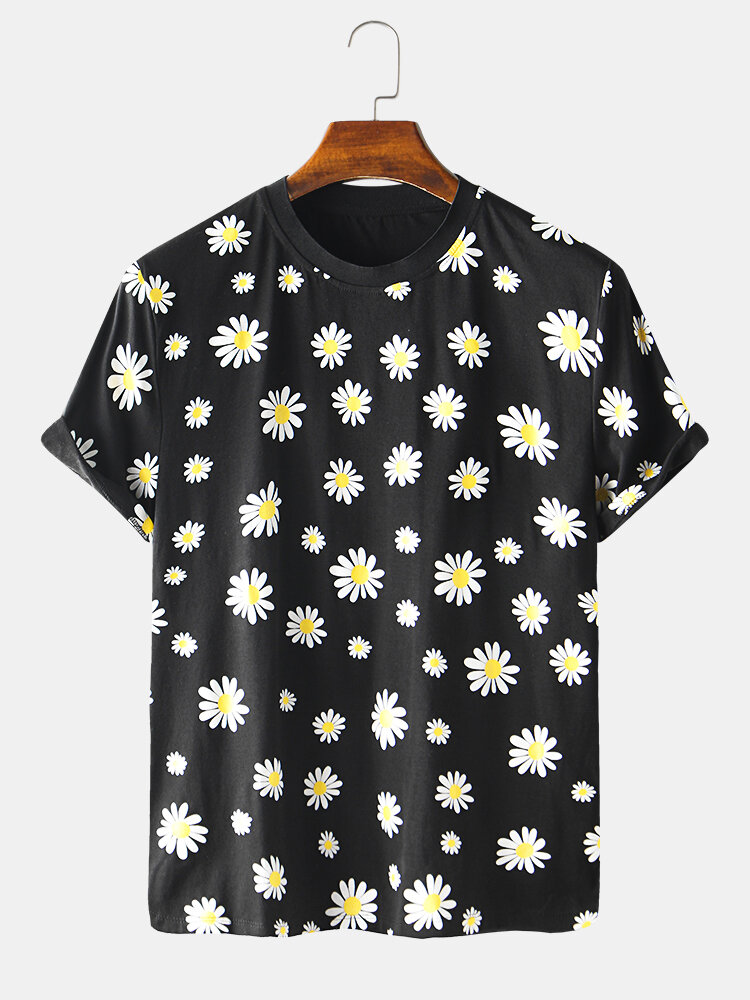Description:Item Type: T-ShirtsPattern Type: PrintingGender: MenFit Type: FitStyle: Casual,FashionThickness: RegularCollar: Crew NeckSeason: SummerDecorations: FloralMaterial: CottonSleeve Length: Short SleeveColor: BlackCuff Type: Shirt SleeveOccasion: Leisure,Home,Daylife