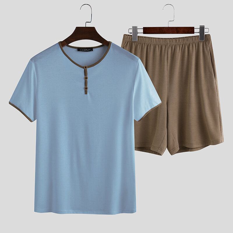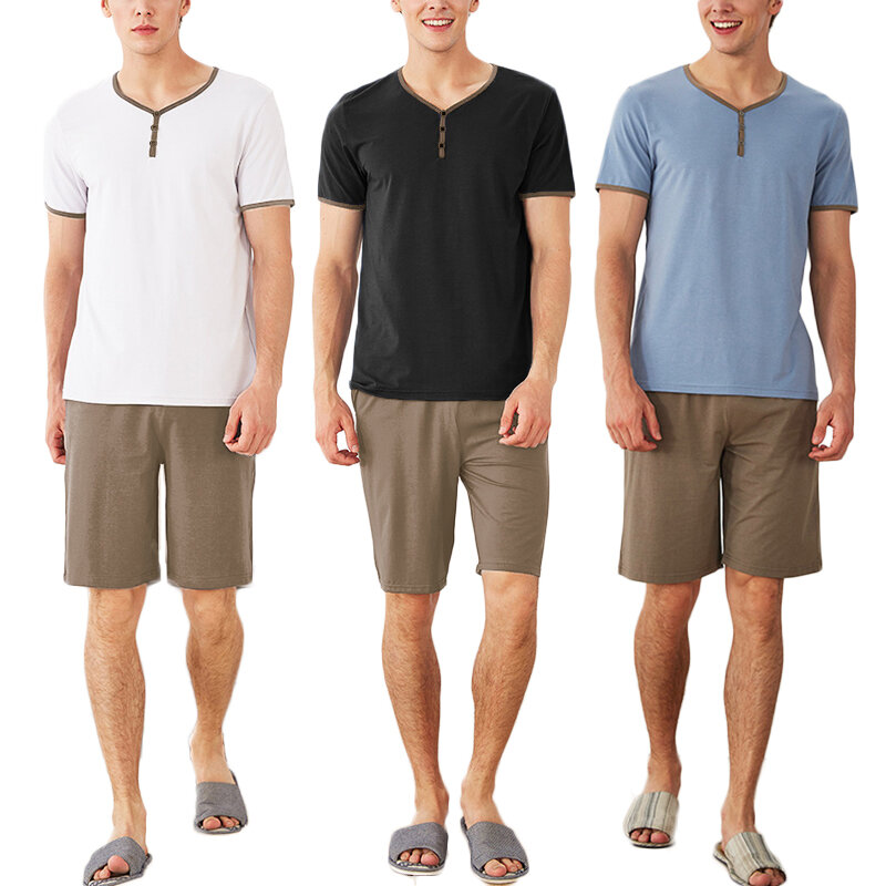 Men’s Pajamas Set Soft Short Sleeve T-shirt Pants Home Wear Sleepwear Set Casual Camping Hiking – White S