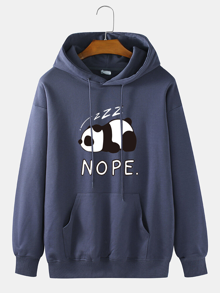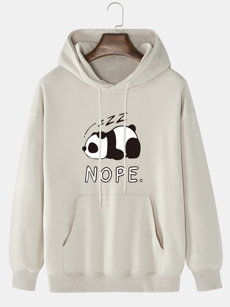 Mens Panda Letter Print Drop Shoulder Cotton Casual Drawstring Hoodies – White S