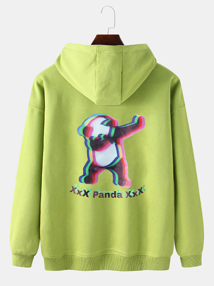 Mens Panda Pattern Letter Print Kangaroo Pocket Long Sleeve Drop Shoulder Design Hoodies – Black S